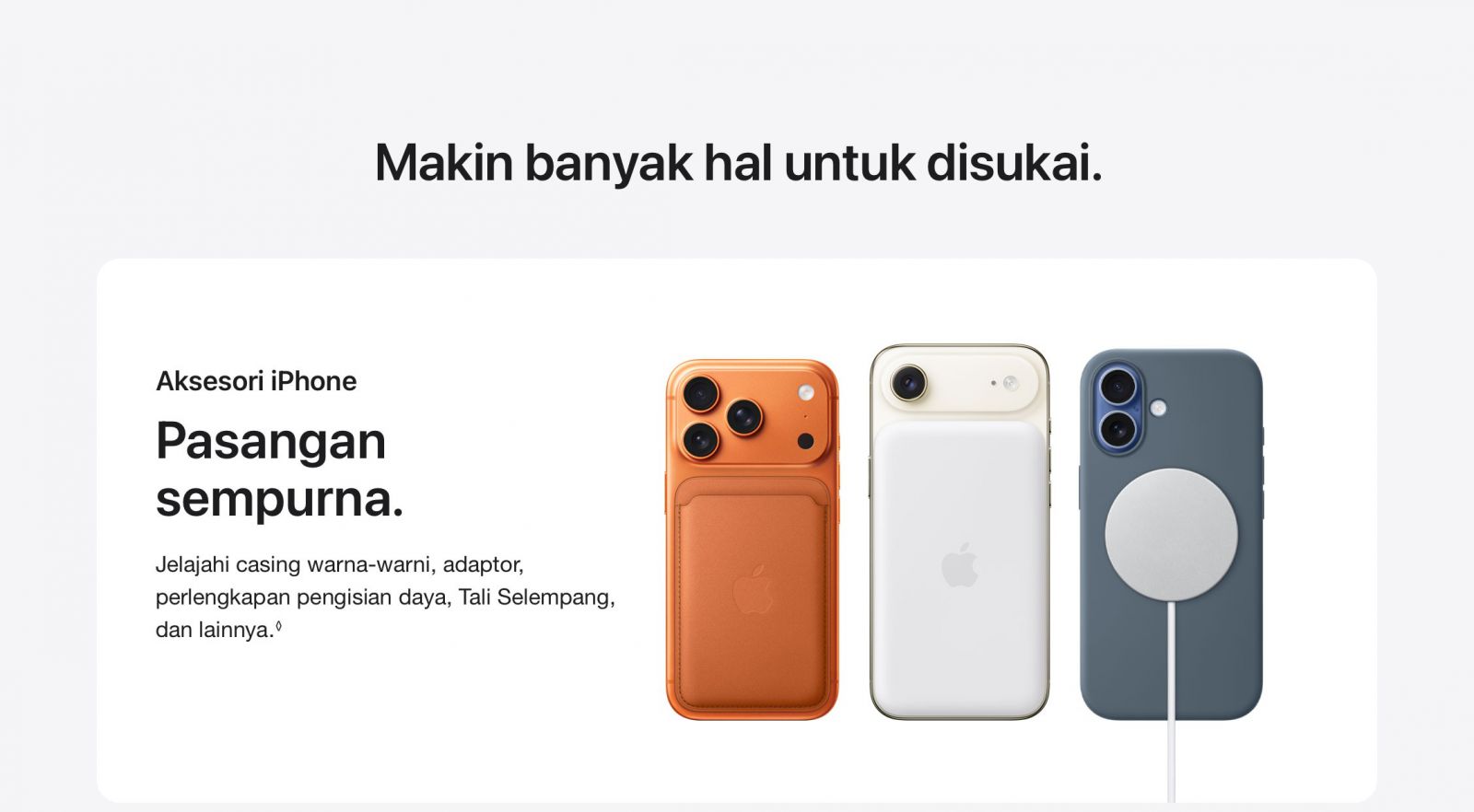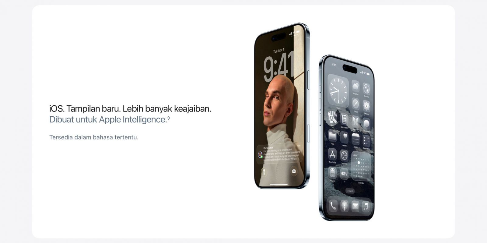 iOS 26. TAMPILAN BARU. LEBIH BANYAK KEAJAIBAN. — Desain baru dengan Liquid Glass. Indah, menyenangkan, dan tetap familier. Dengan Layar Terkunci yang lebih terang, voting dan latar belakang di Pesan yang dapat disesuaikan, Penyaringan Panggilan, dan banyak lagi.
