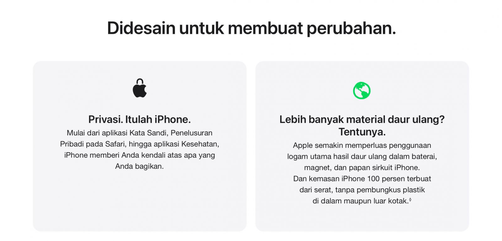 PRIVASI — Level privasi dan keamanan yang benar-benar baru. Terpasang di dalamnya.